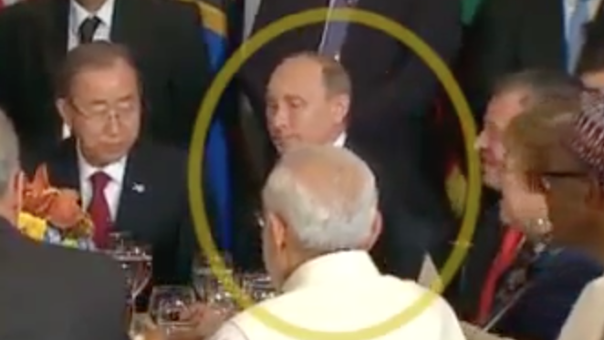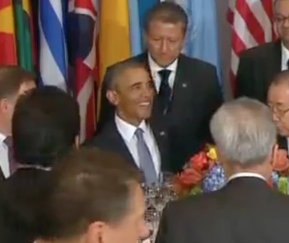 Aynı masayı paylaştığı kişilerle Genel Kurul’ un açılışı onuruna kadeh tokuşturan Obama, sol yanında oturan Putin’ i görmezden geldi ve kadeh tokuşturmadı.